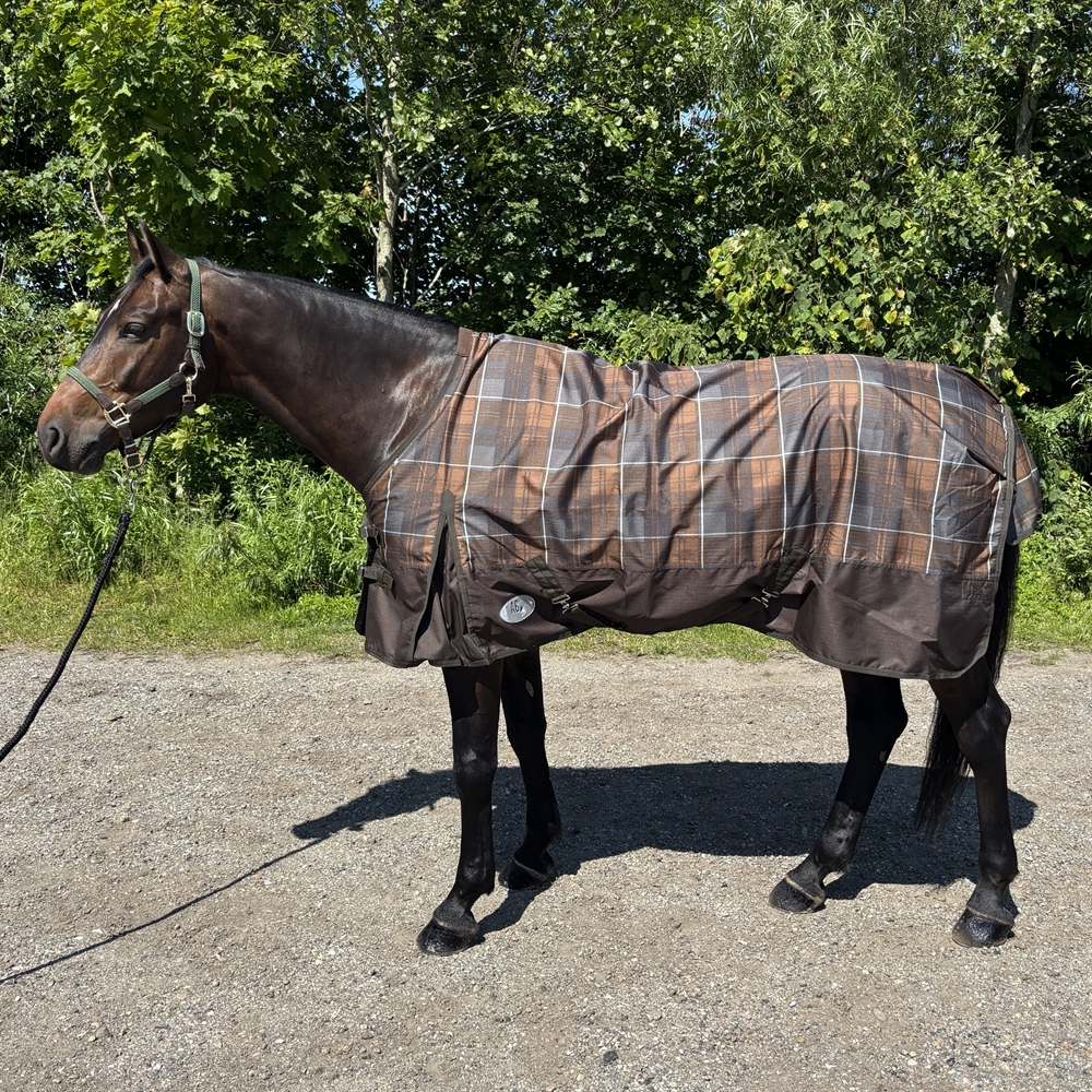 Derki dla konia mają zewnętrzną stronę wykonaną z 600-denierowego poliestru ripstop i polarową podszewkę od wewnątrz.
