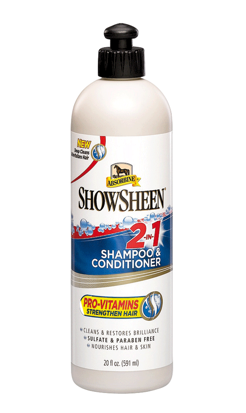 Nadaj swojemu koniowi lśniącą, zdrową sierść dzięki Absorbine Showsheen 2-in-1 Szampon & Odżywka. Ten produkt głęboko oczyszcza i naprawia grzywę oraz ogon w jednym prostym kroku – nie jest potrzebna osobna odżywka. Szampon jest wolny od siarczanów i parabenów oraz ma pH dostosowane specjalnie do wrażliwej skóry konia. Pro-witaminy w formule odżywiają skórę i wzmacniają włosy, pozostawiając grzywę i ogon miękkie, lśniące i łatwe do rozczesania.