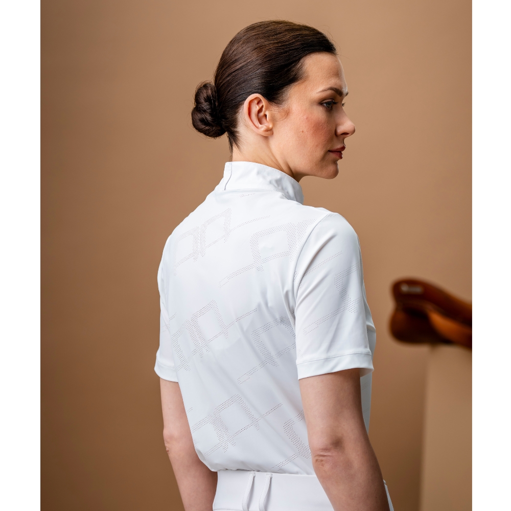Alessandro Albanese Elena Show Shirt to klasyczna i elegancka koszula konkursowa, połączona z nowoczesnymi funkcjami high-tech. Koszula jest wykonana z wysokowydajnego, oddychającego i odprowadzającego wilgoć materiału technicznego, który zapewnia optymalny komfort – nawet podczas gorących i wymagających dni konkursowych.