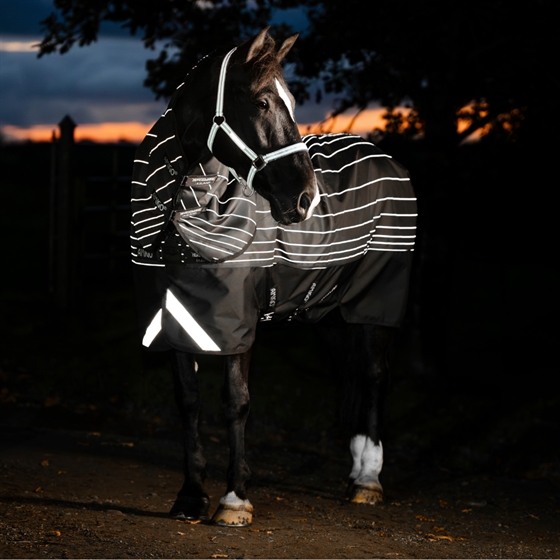 Amigo Bravo 12 Reflectech Plus 250 g to derki zimowe, które łączą klasyczną jakość Bravo z dodatkowym bezpieczeństwem. Materiał odblaskowy jest wpleciony bezpośrednio w tkaninę, co zapewnia znacznie lepszą widoczność w ciemne i mglistne zimowe dni. Idealne dla koni, które dużo przebywają na pastwisku – nawet gdy pogoda i światło dzienne nie są po ich stronie.