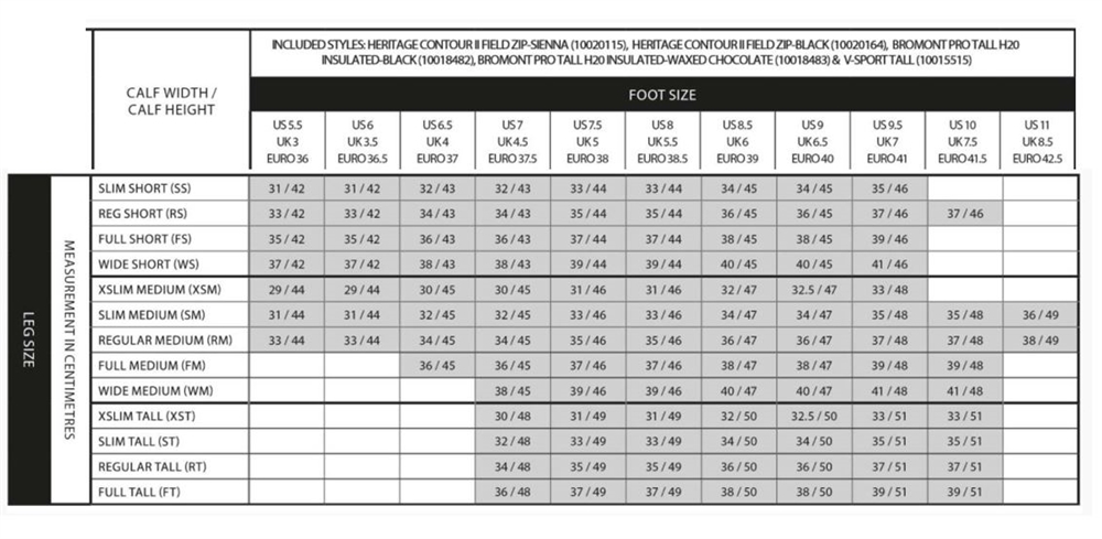 (A) Zmierz łydkę w najszerszym miejscu. Większość butów ma gumkę, więc mogą się rozszerzyć o około 2 cm więcej niż podano w tabeli rozmiarów.