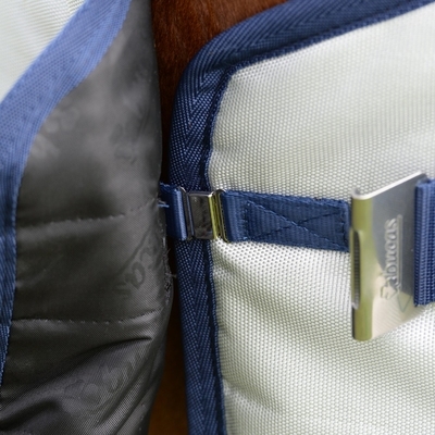 Podszycie z polaru Stay-Dry w polaczeniu z odbijajaca cieplo aluminiowo-srebrna warstwa wierzchnia zapewnia optymalna regulacje temperatury. Derki dla konia utrzymuje konia w cieple w chlodniejsze dni, a jednoczesnie zapobiega przegrzaniu przy lagodniejszych temperaturach.