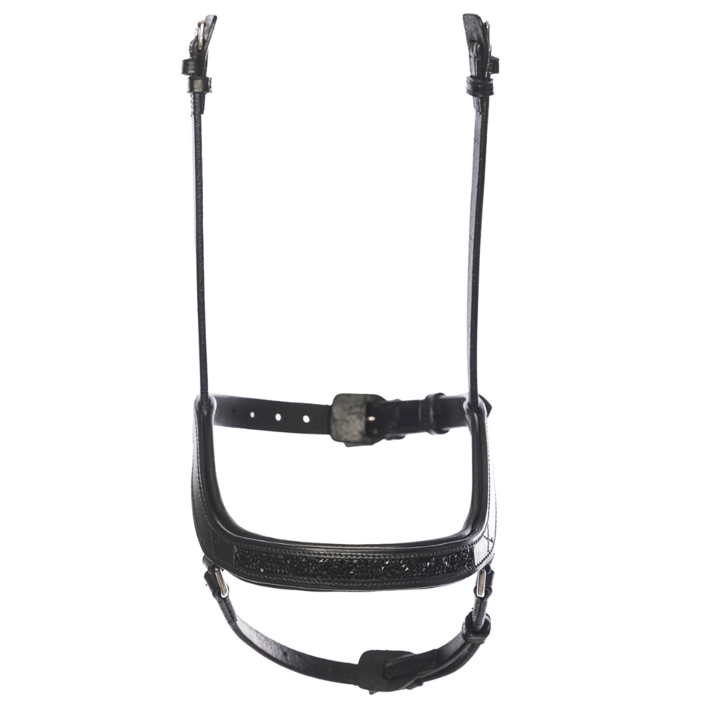 Ten elegancki ergonomiczny nachrapnik od StepByStep jest ozdobiony ekskluzywnymi detalami Moon Rock, które nadają stylowy i luksusowy wygląd. Nachrapnik jest wykonany z miękkiej skóry wysokiej jakości i ma wygodną, wyściełaną podszewkę wewnętrzną, która zapewnia koniowi maksymalny komfort.