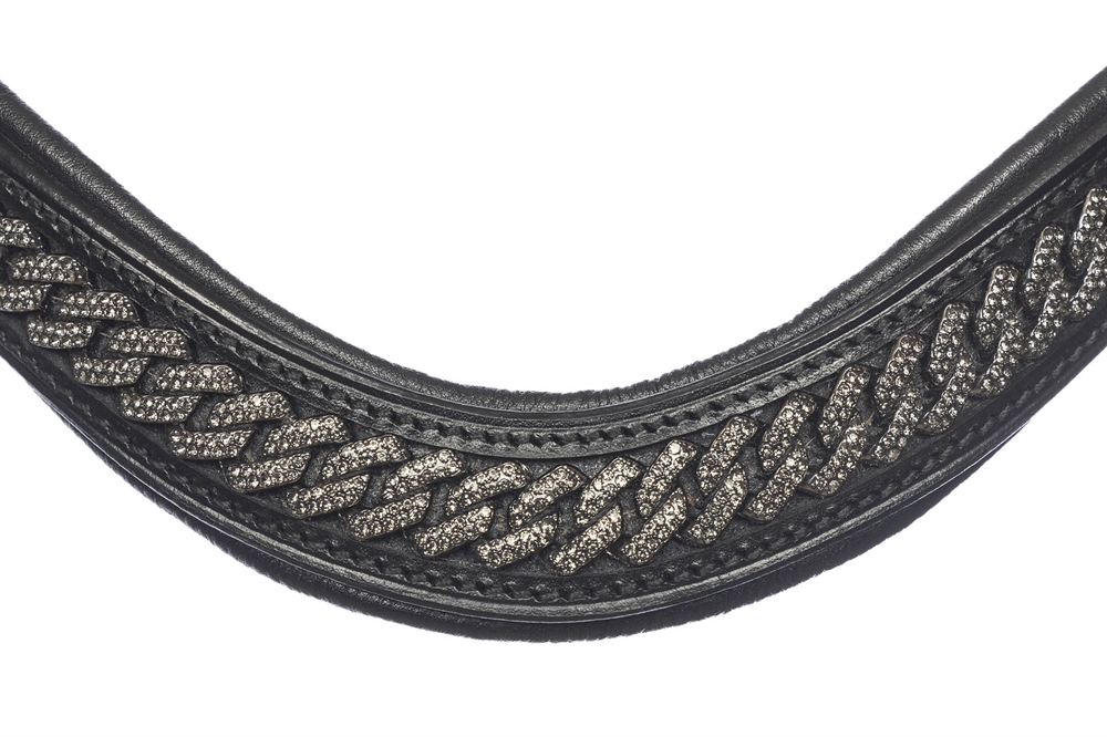 Elegancki zakrzywiony naczółek z charakterystycznym Crystal Curb – piękny łańcuch z drobnymi kryształkami, który nadaje naczółkowi biżuteryjny i ekskluzywny wygląd.