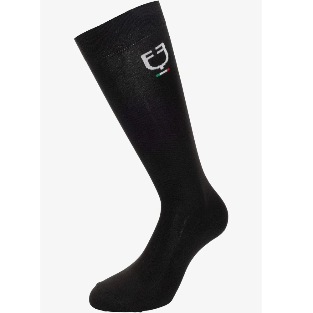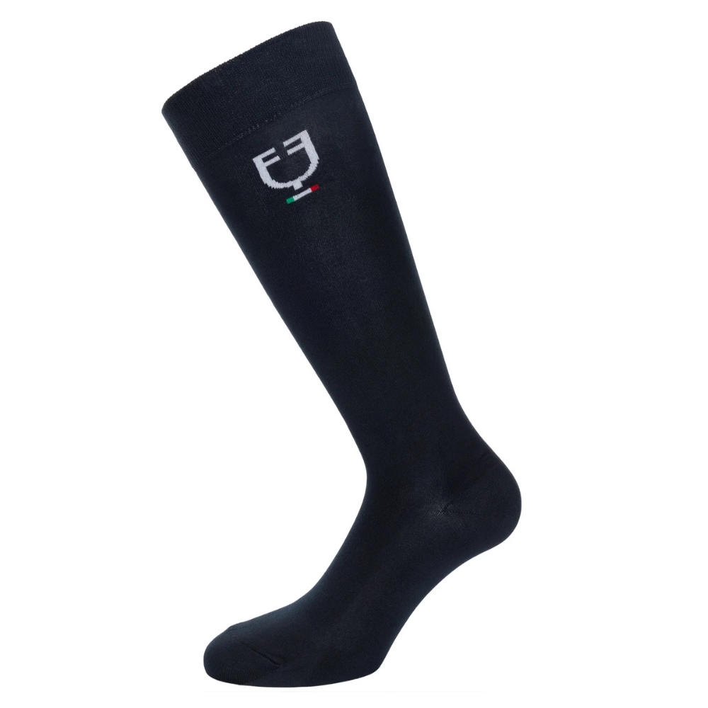 Techniczne skarpety jeździeckie od Equestro, zaprojektowane z oddychającego, lekkiego i wygodnego materiału stretch, który zapewnia optymalny komfort w butach jeździeckich. Skarpety ozdobione są eleganckim logo z włoską flagą, co podkreśla elegancki, sportowy design.