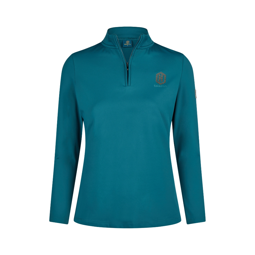 Funkcjonalna bluzka z długim rękawem z 4-kierunkowego materiału technicznego z półzamkiem i stójką.