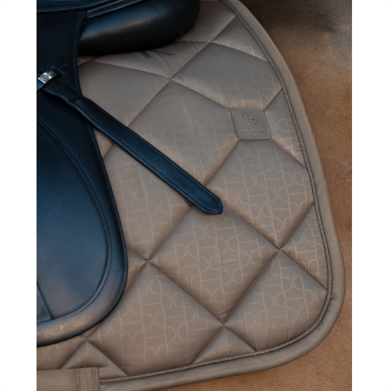 Piękny czaprak skokowy z wytrzymałą, błyszczącą powierzchnią i oddychającą podszewką, która zapewnia komfort koniowi – nawet podczas intensywnego treningu. Duży wzór pikowania ozdobiony jest eleganckim wzorem w kształcie wędzidła, nadającym wyrafinowany wygląd.