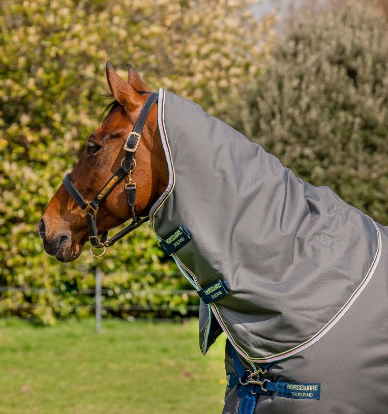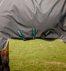 Patentowane zapięcie V-front i wycięcia na nogi zapewniają koniowi optymalną swobodę ruchów i komfort, nawet podczas zabawy na padoku. Derka może być również łączona z systemem liner Horseware, dzięki czemu można łatwo dostosować ciepło w zależności od potrzeb – linery dostępne są w 100, 200, 300 i 400 gram.