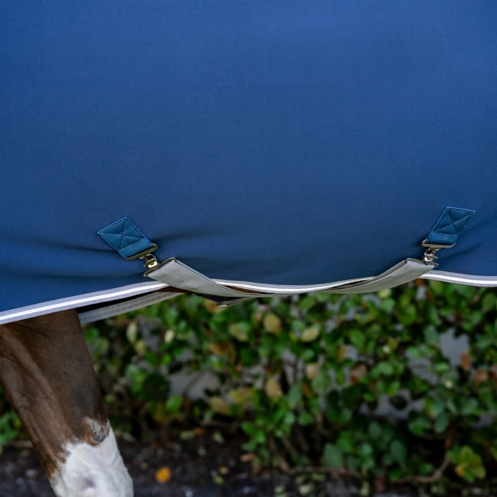 Amigo Jersey Cooler ma znane dopasowanie Horseware, które zapewnia, że derki dla konia leżą stabilnie i wygodnie na koniu. Zapinany jest na pojedyncze zapięcie z przodu, ma dwa pasy pod brzuchem oraz pojedynczy pasek na ogon. Dobre dopasowanie oznacza, że nie ma potrzeby stosowania pasków na nogi, co zmniejsza ryzyko podrażnień.