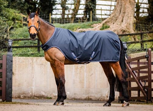 Koń będzie ciepły i suchy podczas pracy, ponieważ derka ma wiatro- i wodoodporną powłokę zewnętrzną.