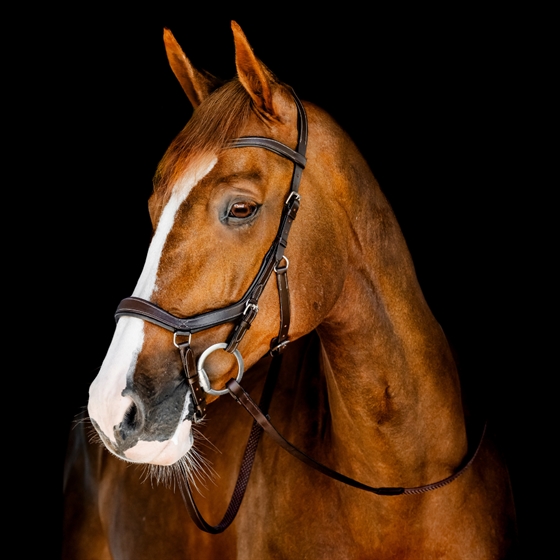 Ogłowie zostało zaprojektowane z myślą o odciążeniu nerwów i wrażliwych obszarów na głowie konia, co czyni je bardziej komfortowym, delikatniejszym i ostatecznie daje koniowi lepszą możliwość pracy w sposób zrelaksowany i prawidłowy. Przemyślany design redukuje nacisk na nerwy, zęby policzkowe, język i drogi oddechowe – bez kompromisów w zakresie kontaktu i kontroli.