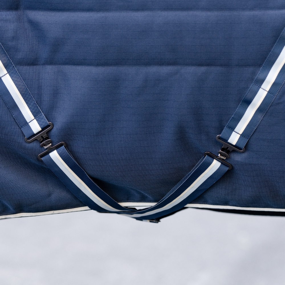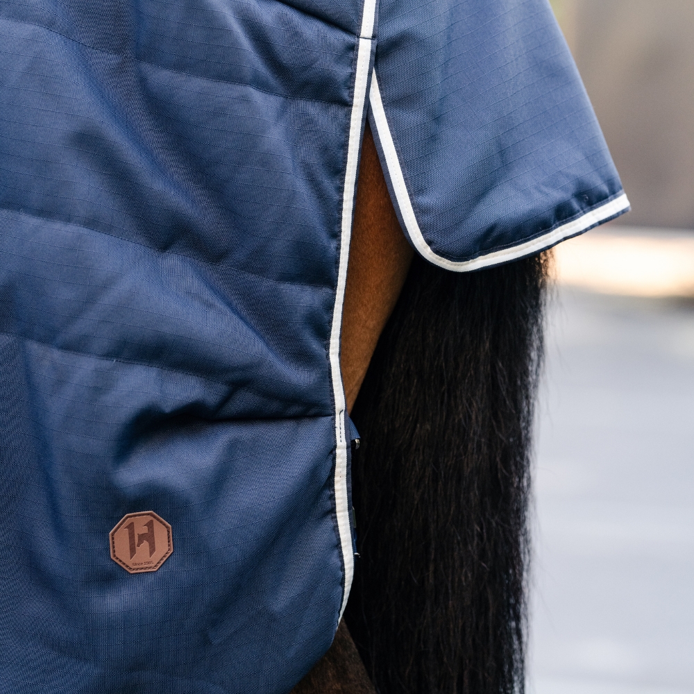 Derka jest wykonana z wytrzymałego materiału zewnętrznego 1000D ripstop, który zapewnia długą trwałość przy codziennym użytkowaniu. Termicznie łączone wypełnienie włóknem zapewnia równomierną i skuteczną izolację cieplną bez mostków termicznych, podczas gdy chłonąca wilgoć podszewka z mikrofibry pomaga utrzymać konia suchego i komfortowego – nawet gdy jest jeszcze lekko ciepły po treningu.