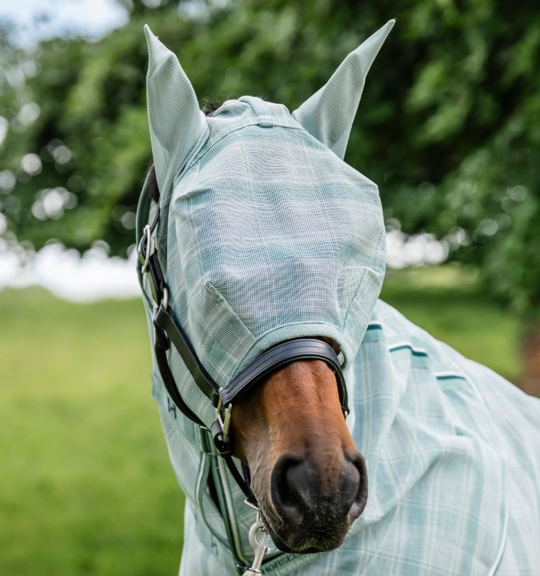 Horseware® Newmarket maska przeciw owadom jest wykonana z nowej, tkanej siatki poliestrowej z powloka PVC i zapewnia zarówno ochrone UV oraz skuteczna ochrone przed muchami. Innowacyjny material jest jednoczesnie oddychajacy i wytrzymaly, co sprawia, ze wrazliwe oczy i uszy Twojego konia sa niezawodnie chronione.