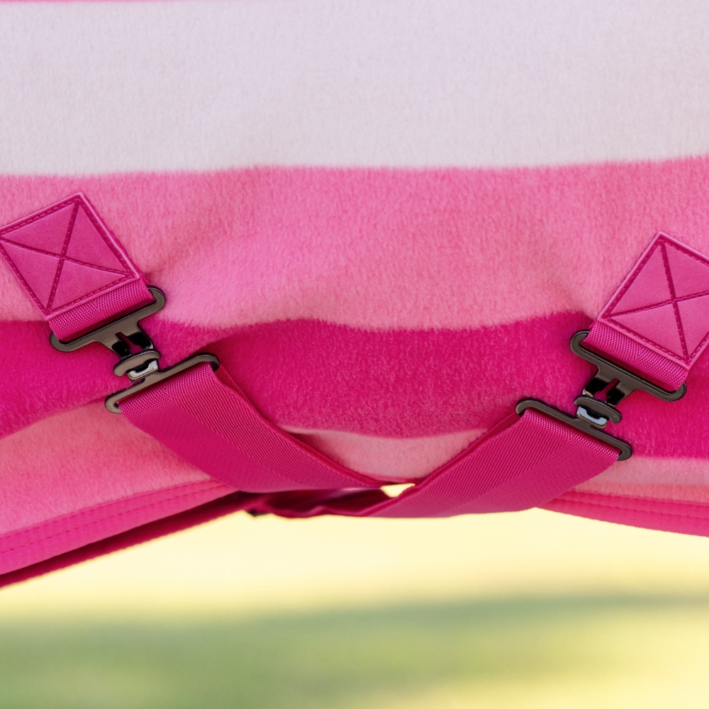 Dzięki specjalnie zaprojektowanemu dopasowaniu do małych koni, klasycznemu zapięciu z przodu i ikonicznym paskom Newmarket, ta derka jest zarówno praktyczna, jak i stylowa.