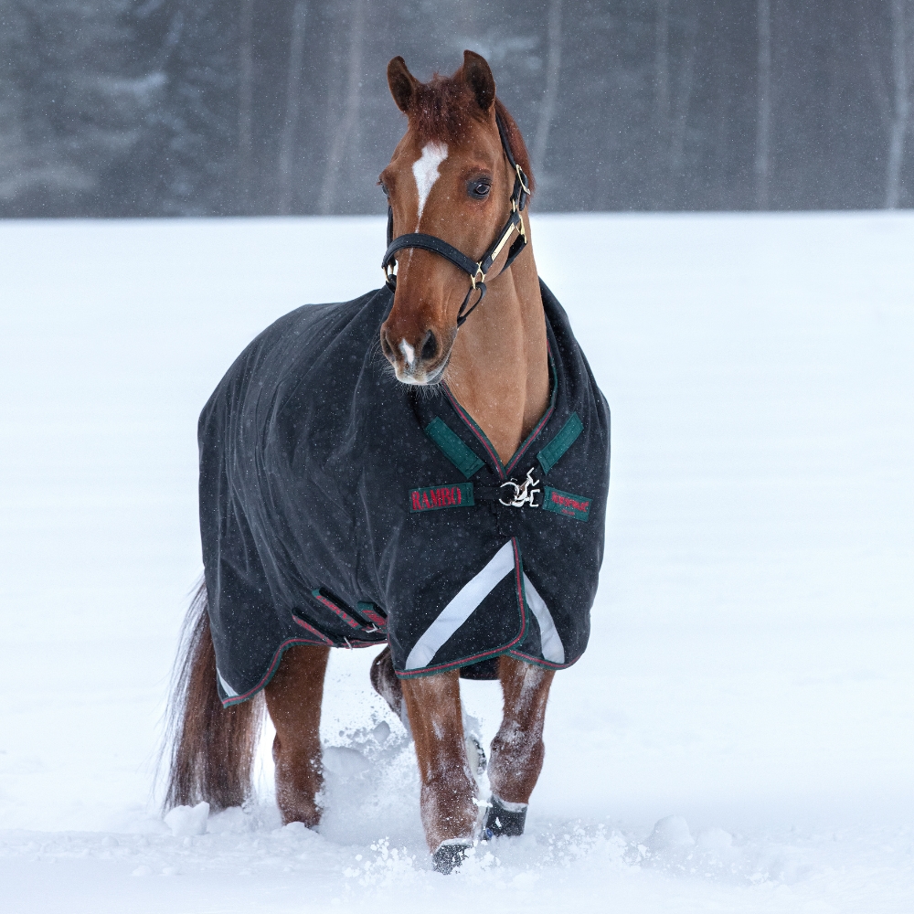 Rambo Wug 400 gram to jedna z najbardziej niezawodnych derki dla konia Horseware na chłodne jesienne i zimowe dni. Jest wykonana z ultrawytrzymałego 1000 denier ballistic nylon, znanego z ekstremalnej trwałości, wodoodporności i odporności na rozdarcia. Charakterystyczny półwysoki kołnierz Wug zapewnia dodatkową ochronę przed wiatrem i pogodą – bez nacisku na kłąb.