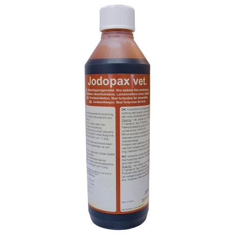 Jodopax-vet 500 ml ma szybkie działanie na bakterie, grzyby i wirusy. Środek dezynfekujący dla zwierząt i ich otoczenia. Należy rozcieńczyć przed użyciem. Zawiera 500 ml Proporcje mieszania: 1:4 części wody.