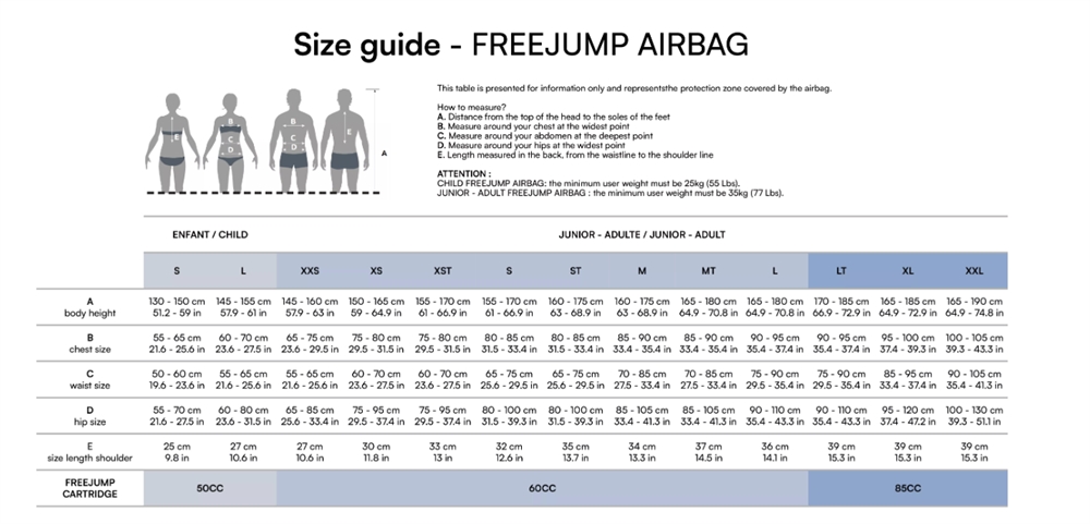 Silne idee Freejump dotyczące wydajności i innowacji w jeździectwie naturalnie skierowały większą uwagę na bezpieczeństwo. Dziś kamizelka FREEJUMP AIRBAG jest pierwszą i jedyną poduszką powietrzną certyfikowaną zgodnie z nową normą NF S72-800-2021. Po pracy zespołu europejskich ekspertów, którzy współpracowali przez 4 lata, Francja jest pierwszym krajem, który wprowadził normę na produkcję poduszek powietrznych używanych w jeździectwie. W oczekiwaniu na europejską harmonizację, nowa norma NF S72-800-2021 oznacza zwiększoną ochronę jeźdźców w zakresie chronionego obszaru, czasu inflacji oraz dlatego, że wszystkie kamizelki podlegają bardziej rygorystycznym testom wytrzymałościowym. Nowy design: lepsza ochrona, norma z 2021 Nowe tkaniny: bardziej oddychające, bardziej elastyczne i gładsze Nowy nabój gazowy: szybszy, lżejszy, nowa norma z 2021 Nowe linki (z kulką i Y): cichsze tkaniny o wysokiej wydajności Poduszka powietrzna Freejump powinna być noszona blisko ciała na cienkiej warstwie odzieży (T-shirt, sweter lub cienki pulower itp.). Kompatybilne kurtki mają oznaczenie "Freejump Airbag Technology". Obejrzyj powyższy film, aby zobaczyć demonstrację kamizelki. Dostępna w rozmiarach: XS - S - M - L - XL - XXL