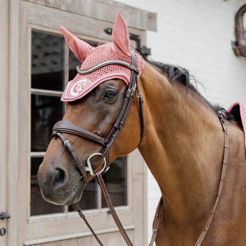 Osłona przeciw muchom Fly Veil Wellington 3D ma widoczne logo Kentucky z przodu. Ta osłona przeciw muchom Kentucky Horsewear chroni uszy konia przed muchami podczas jazdy. Ten model ma elegancką linkę, aby zwiększyć kontrast między kolorami.