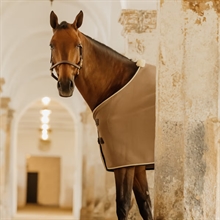 Derki dla konia wykonano z oddychającego materiału z syntetycznym futrem jagnięcym przy kłębie, co zapewnia zarówno komfort, jak i luksusowy wygląd. Są lekkie, oddychające i niezwykle miękkie, dzięki czemu idealnie sprawdzają się u wrażliwych koni. Odpinane pasy krzyżowe po wewnętrznej stronie zapewniają dodatkowe bezpieczeństwo i elastyczność.