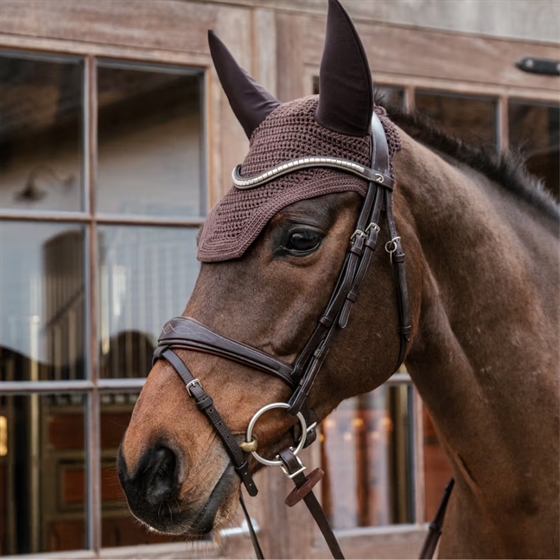 Kentucky Horsewear wyciszająca nausznica została zaprojektowana, aby redukować hałas i zapewnić Twojemu koniowi bardziej zrelaksowane odczucia podczas jazdy. Naczółek jest lekko wydłużony, dzięki czemu nausznica wygodnie układa się pod ogłowiem, nie obciera i nie przesuwa się.