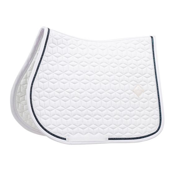 Elegancki czaprak z unikalnym pikowaniem w gwiazdy oraz dekoracyjnymi detalami z brokatu i liny, łączący styl i funkcjonalność. Czapraki chronią konia przed tarciem od siodła i zapewniają optymalny komfort podczas jazdy. Proste rozwiązanie projektowe z jedną nylonową taśmą do popręgu ułatwia zakładanie i zdejmowanie.