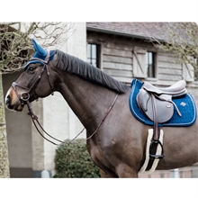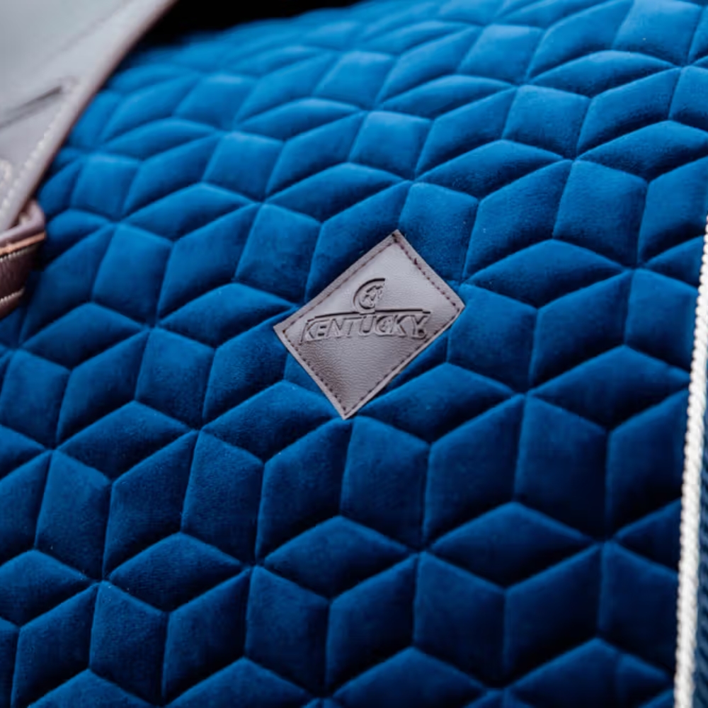 Ekskluzywne czapraki z serii Velvet firmy Kentucky zapewniają niezwykłą amortyzację pomiędzy grzbietem konia a siodłem, jednocześnie chroniąc przed tarciem. Te czapraki są nie tylko niezwykle funkcjonalne, ale także niesamowicie stylowe i klasyczne dzięki podwójnie skręconym krawędziom i welurowej stronie zewnętrznej. Kentucky Velvet Czapraki do skoków zostały zaprojektowane z naciskiem na komfort i funkcjonalność. Wykonane są z pikowaniem w gwiazdki, które nie tylko dodaje estetycznego wyglądu, ale także przyczynia się do równomiernego rozkładu ciśnienia i zwiększonej oddychalności. Ten czaprak jeździecki to model, który pasuje do siodeł skokowych i kombinowanych. Model ten dostępny jest również do siodeł ujeżdżeniowych i pony. Czapraki nie mają pasków do zamocowania do siodła, ale mają nylonowe paski do utrzymania popręgu na miejscu. Dzięki temu wyglądają elegancko i są łatwiejsze do codziennego użytku. Logo Kentucky na tym czapraku umieszczone jest wysoko, co daje możliwość haftu logo lub nazwy. Dodaje to osobistego akcentu i sprawia, że czaprak jest unikatowy dla Ciebie i Twojego konia. Czapraki te dostępne są w wielu pięknych kolorach i łatwo jest stworzyć dopasowany zestaw z kapturkami, ochraniaczami skokowymi i bandażami Kentucky. Czapraki siodłowe Kentucky z serii Velvet to idealny wybór dla jeźdźców pragnących połączenia stylu, komfortu i funkcjonalności. Pozwól swojemu koniowi doświadczyć doskonałego komfortu i ochrony podczas skoków dzięki tym ekskluzywnym czaprakom. Wybierz Kentucky - markę znaną z jakości, designu i troski o dobro Twojego konia. Czapraki można prać w pralce w 30°, nie wolno ich suszyć w suszarce bębnowej.