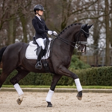 LeMieux Crystal Suede czaprak do ujeżdżenia jest zaprojektowany dla różnych siodeł do ujeżdżenia i posiada dobrą bambusową podszewkę, wzmocnienie PU przy popręgu oraz błyszczący kryształowy pas i pipes, co nadaje mu wyjątkowy wygląd.