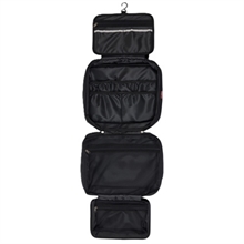 Ten sprytny organizer rozsuwa się i rozkłada, dając jasny przegląd wszystkich drobiazgów. Wewnątrz znajdziesz wiele kieszeni i przegródek, które ułatwiają utrzymanie porządku we wszystkim, od produktów pielęgnacyjnych i szczotek po zgrzebła, wstążki i akcesoria.
