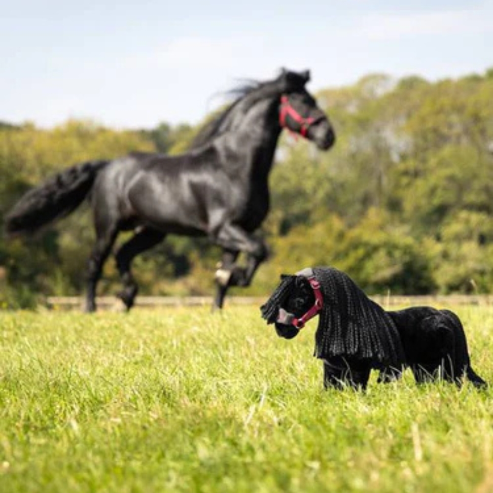 • Realistyczny design rasy Frieser – długa, zaplatana grzywa i ogon, czarne szczotki