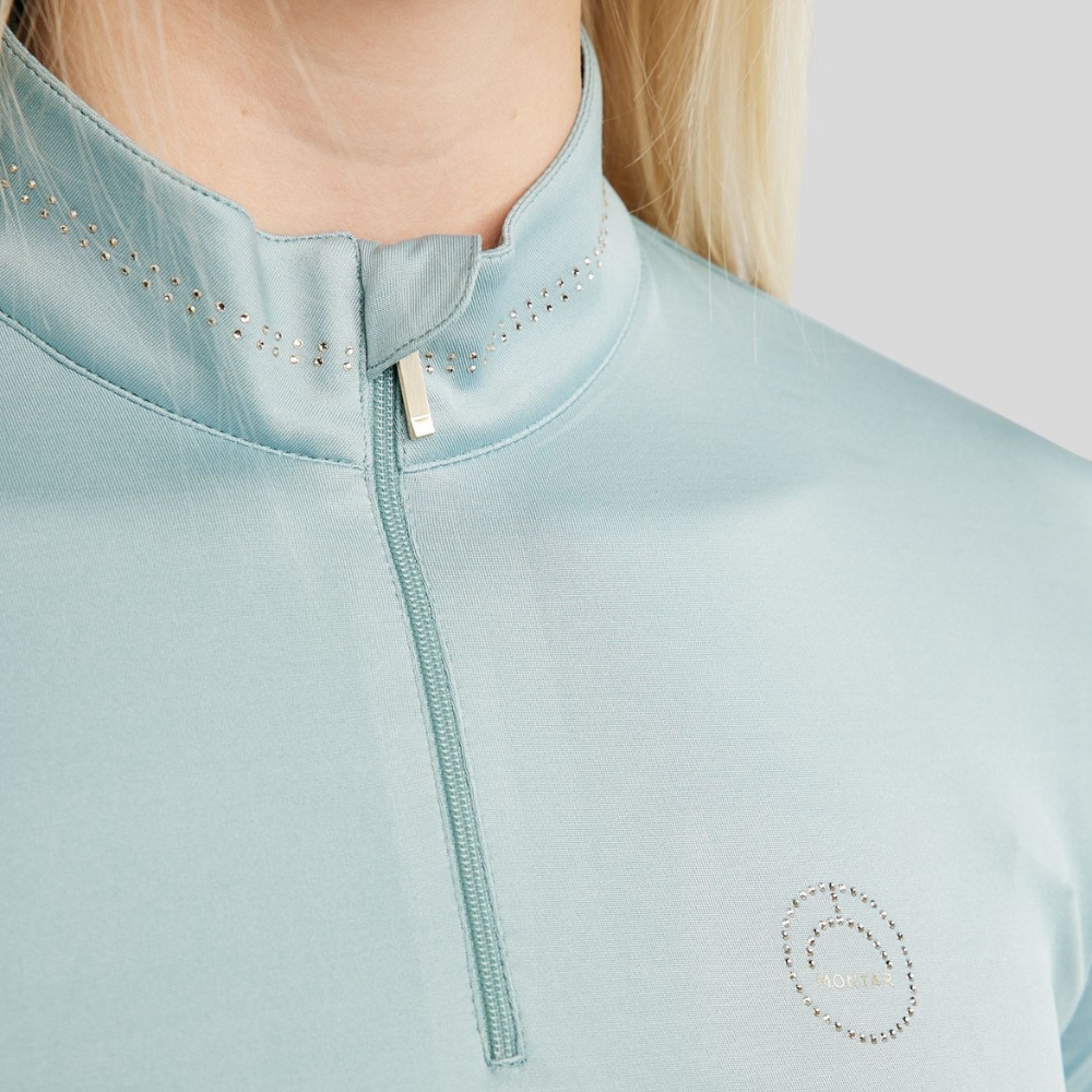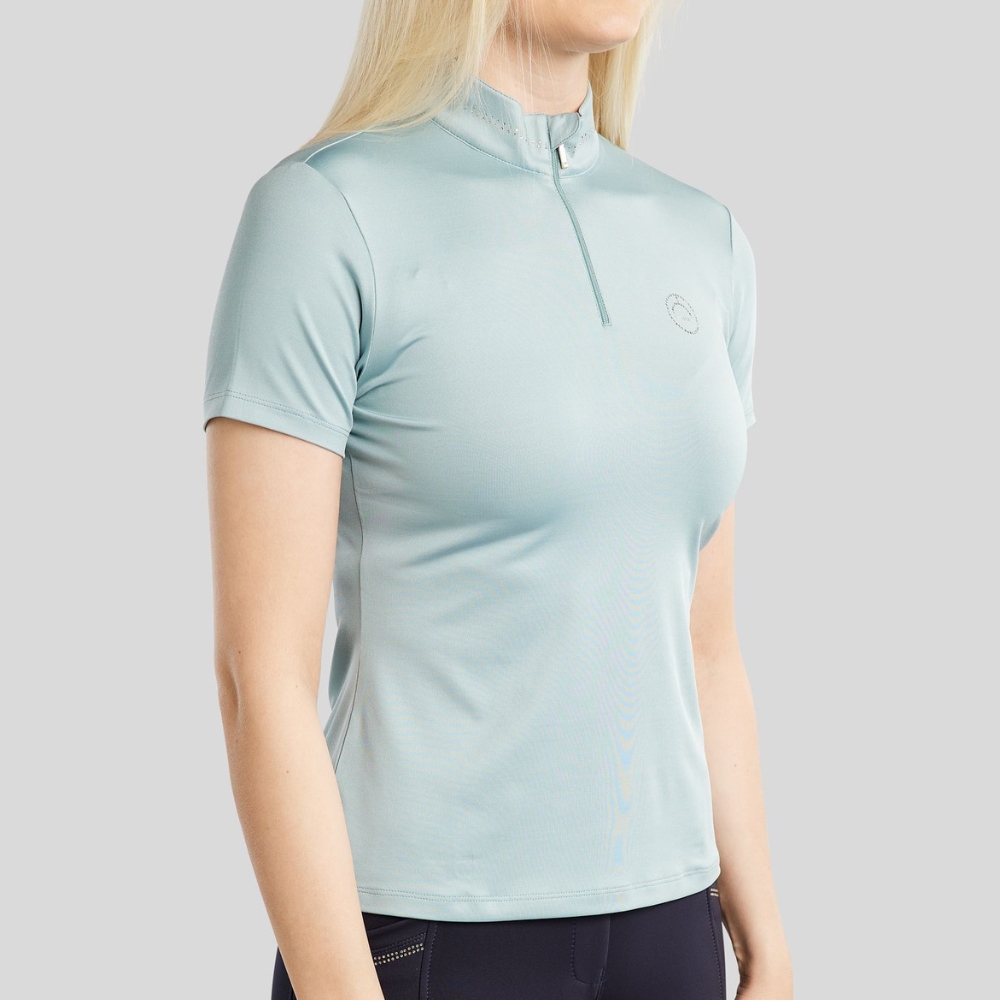 Dodaj nowoczesny i kobiecy akcent do swojej jeździeckiej garderoby z polo Montar MoBlair. Ta elegancka koszulka polo łączy minimalistyczny design z ekskluzywnymi detalami i wysokim komfortem – idealna zarówno na trening, jak i do codziennego użytku w stajni.