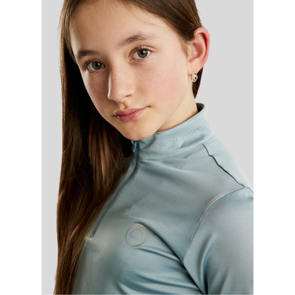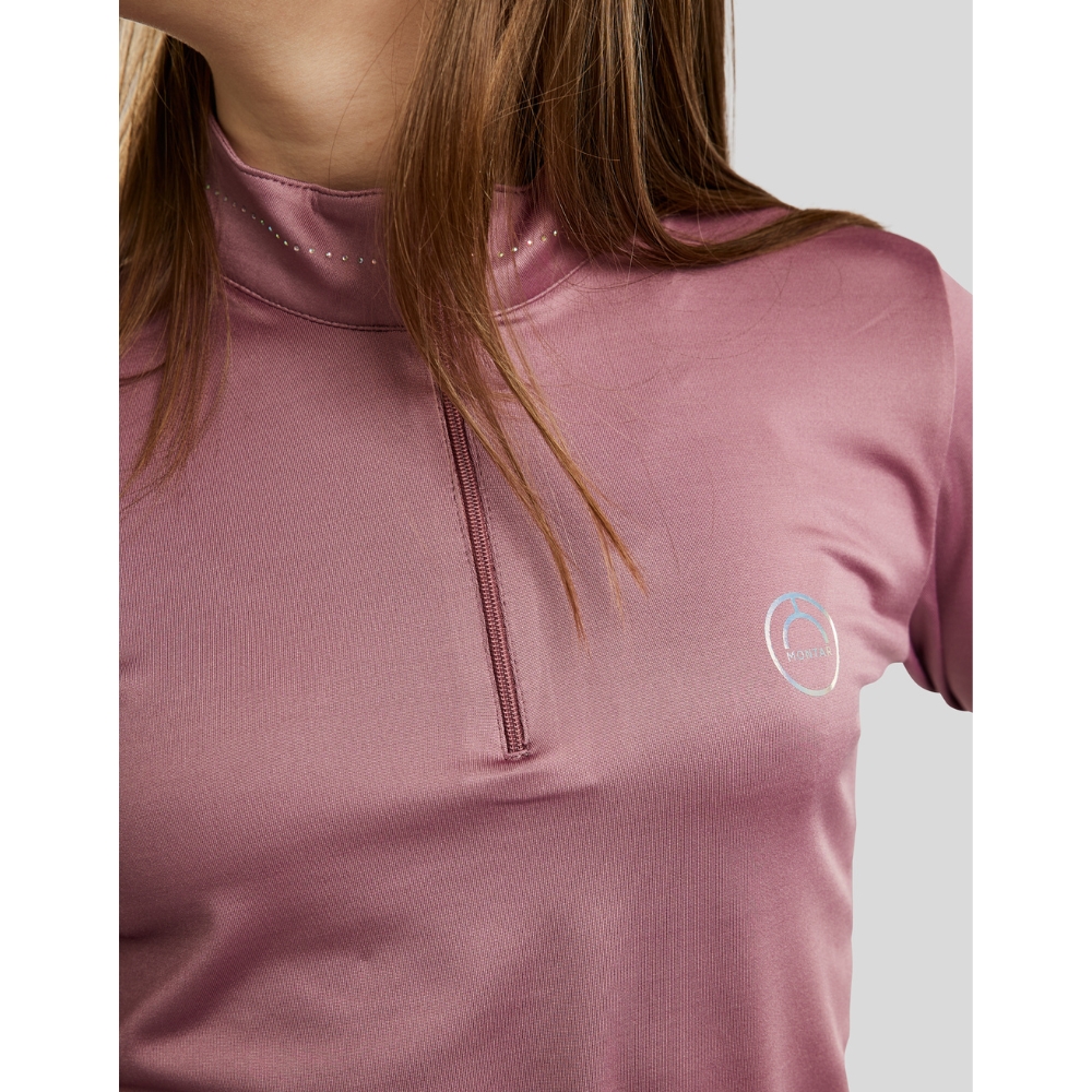 Bluzka ma niski stojący kołnierz z pięknymi kamieniami. Z przodu znajduje się pół-zamek błyskawiczny, a po lewej stronie holograficzne logo Montar o wymiarach około 3 cm.