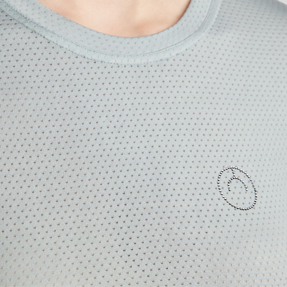 Koszulka MoGrase ma dyskretne i wyrafinowane logo Montar na piersi, wykonane z małych kryształków gun metal, które elegancko odbijają światło. Lekko przezroczysta struktura siatki nadaje sportowy i nowoczesny wygląd, co czyni koszulkę idealną zarówno do jazdy konnej, jak i codziennego użytku.