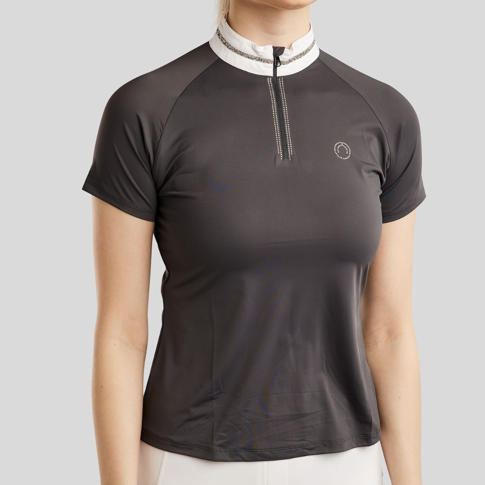 Montar MoLila koszulka konkursowa łączy kobiecy i wyrafinowany wygląd z wysoką funkcjonalnością i komfortem. Koszulka jest zaprojektowana dla jeźdźca, który pragnie eleganckiego i ekskluzywnego wyglądu na arenie – idealna zarówno do treningu, jak i na zawody.
