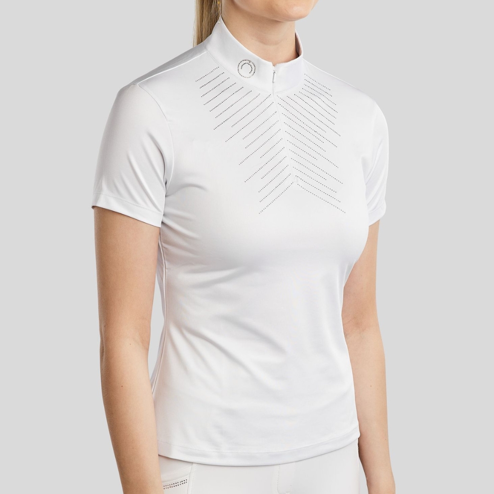 Dodaj olśniewający i elegancki akcent do swojej konkursowej garderoby z koszulą konkursową Montar MoSparkle. Ta kobieca i stylowa koszula łączy klasyczny wygląd z luksusowymi detalami z kryształków oraz wysokim komfortem – idealna dla jeźdźca, który chce uzyskać ekskluzywny efekt na arenie.
