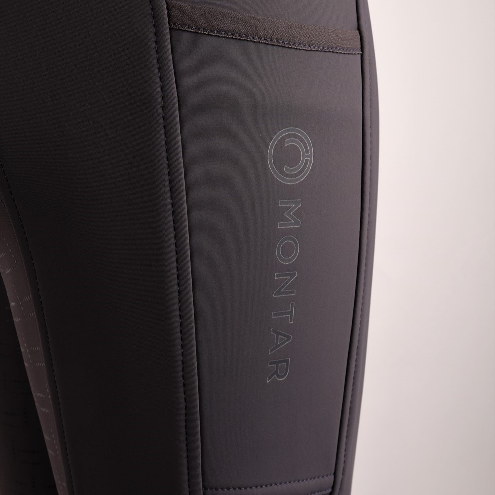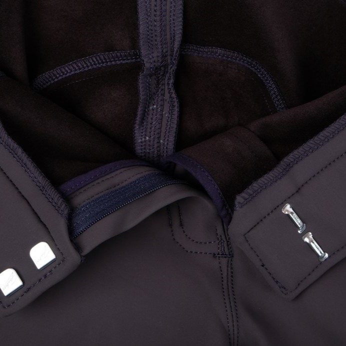 Montar softshell zimowe bryczesy Delilah są wykonane z miękkiego, elastycznego materiału, który jest zarówno wodoodporny, wiatroszczelny, jak i oddychający. Bryczesy są idealne na chłodne zimowe miesiące, ponieważ wewnętrzna strona spodni jest pokryta przyjemnym, miękkim i ciepłym flisem. Bryczesy mają wysoki stan i pełny silikonowy uchwyt w formie małych kropek, miękką i elastyczną lycrę przy kostkach oraz brak uciążliwych szwów po wewnętrznej stronie nogawki. Bryczesy mają dwie sprytne kieszenie na telefon po bokach nóg. Materiał: 76% poliamid, Elastan 24% Tył: 84% poliamid, elastan 16% Dostępne w kolorach: Black - Navy Dostępne w rozmiarach: 34 - 36 - 38 - 40 - 42 - 44 - 46