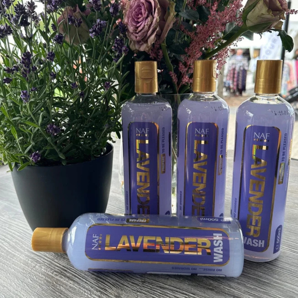 NAF Lavender Wash to łagodny i oczyszczający płyn do mycia koni, który skutecznie usuwa pot i brud z sierści po treningu. Produkt jest szczególnie polecany do redukcji podrażnień skóry i przeciwdziałania lepkości skóry i sierści, jednocześnie pozostawiając konia czystym, świeżym i zadowolonym.