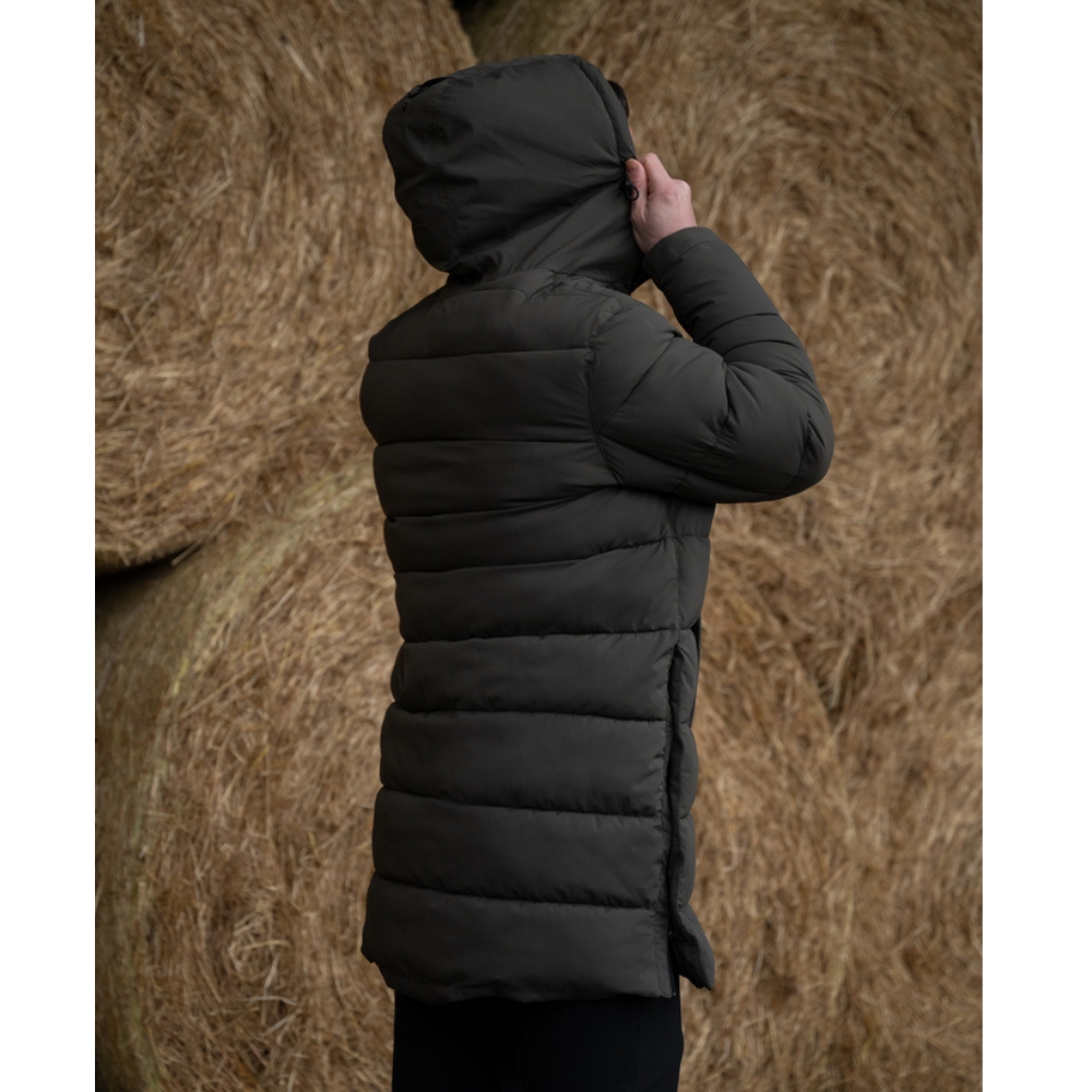 PIKEUR Quilted Coat 8014 Sports Man to elastyczna i funkcjonalna pikowana parka, zaprojektowana dla jeźdźca, który pragnie optymalnego komfortu i ochrony w zimnych, mokrych i wietrznych warunkach pogodowych. Kurtka wykonana jest z miękkiego i elastycznego materiału z dyskretnym prążkowanym wyglądem, który nadaje nowoczesny i sportowy charakter.