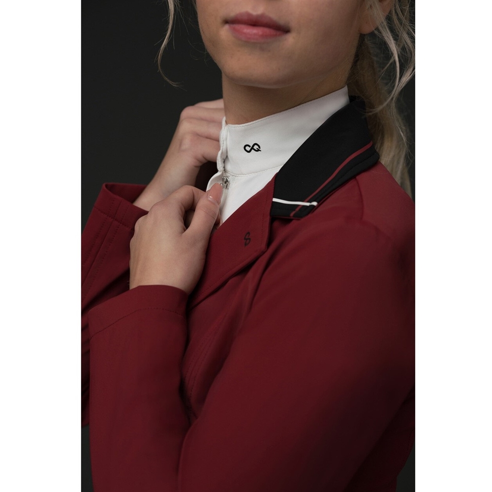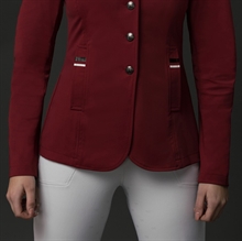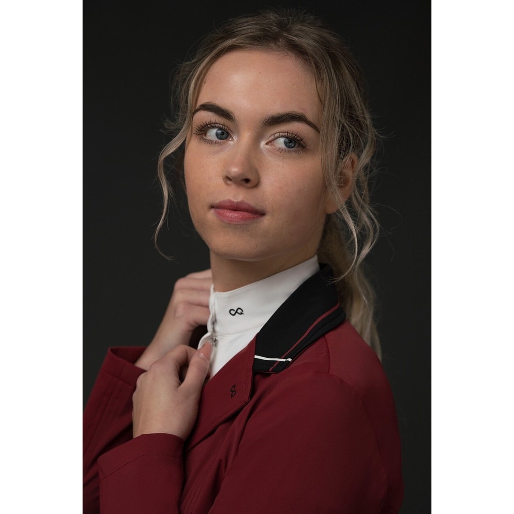 Stylowa i elegancka kurtka konkursowa wykonana z tkaniny 2nd SkinTEQ, która zapewnia komfort noszenia. Jest niezwykle oddychająca i wykonana z materiału 4-way stretch, wodoodporna i kontrolująca wilgotność. Kurtka konkursowa, która pozwala zaprezentować się z jak najlepszej strony. Dopasowany krój zapewnia elegancki wygląd. Za guzikami z przodu jest suwak. To gwarantuje, że kurtka idealnie przylega i nie ciągnie się ani nie otwiera przy guzikach. Z tyłu znajdują się dwa rozcięcia, a specjalne detale na kołnierzu i kieszeniach dopełniają wygląd. Modelka na zdjęciu ma 175 cm wzrostu i nosi rozmiar EU 36. Materiał: 70% poliamid, 23% elastan, 7% poliuretan Dostępne kolory: Czarny - Burgundy Dostępne rozmiary: 34 - 36 - 38 - 40 - 42