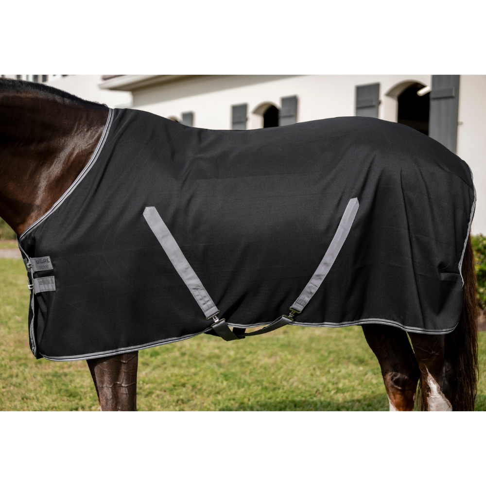 Wnętrze wyściełane jest miękką mikrofibrą, która zapewnia dodatkowy komfort i pomaga utrzymać konia w cieple, nie powodując przegrzania. Klasyczny krój z podwójnym zapięciem z przodu oraz pasami krzyżowymi zapewnia stabilne i dobre dopasowanie.