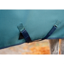 Derki dla konia jest wykonany z 100% poliestru o strukturze waflowej, gdzie specjalna struktura powierzchni skutecznie odprowadza wilgoć z ciała konia. Zapewnia to szybszy czas schnięcia i zapobiega wychłodzeniu konia.