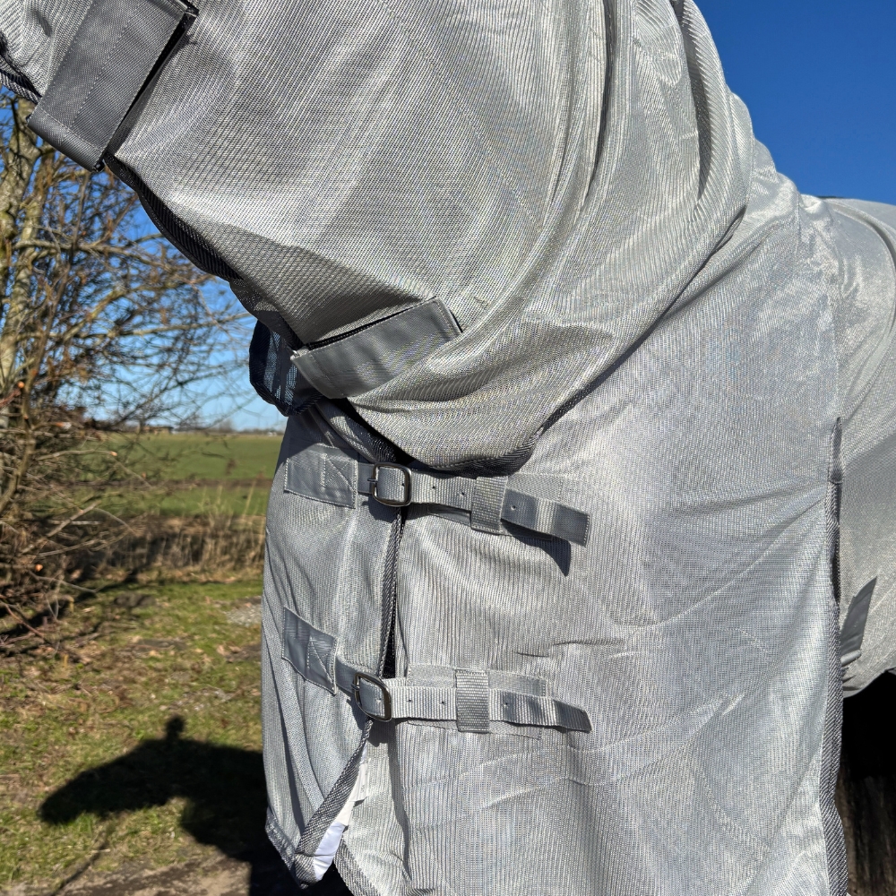 RK Derki przeciw owadom z pasami krzyżowymi to praktyczny i wygodny wybór, który zapewnia optymalną ochronę przed owadami, a jednocześnie pozwala koniowi poruszać się swobodnie i bez ograniczeń.