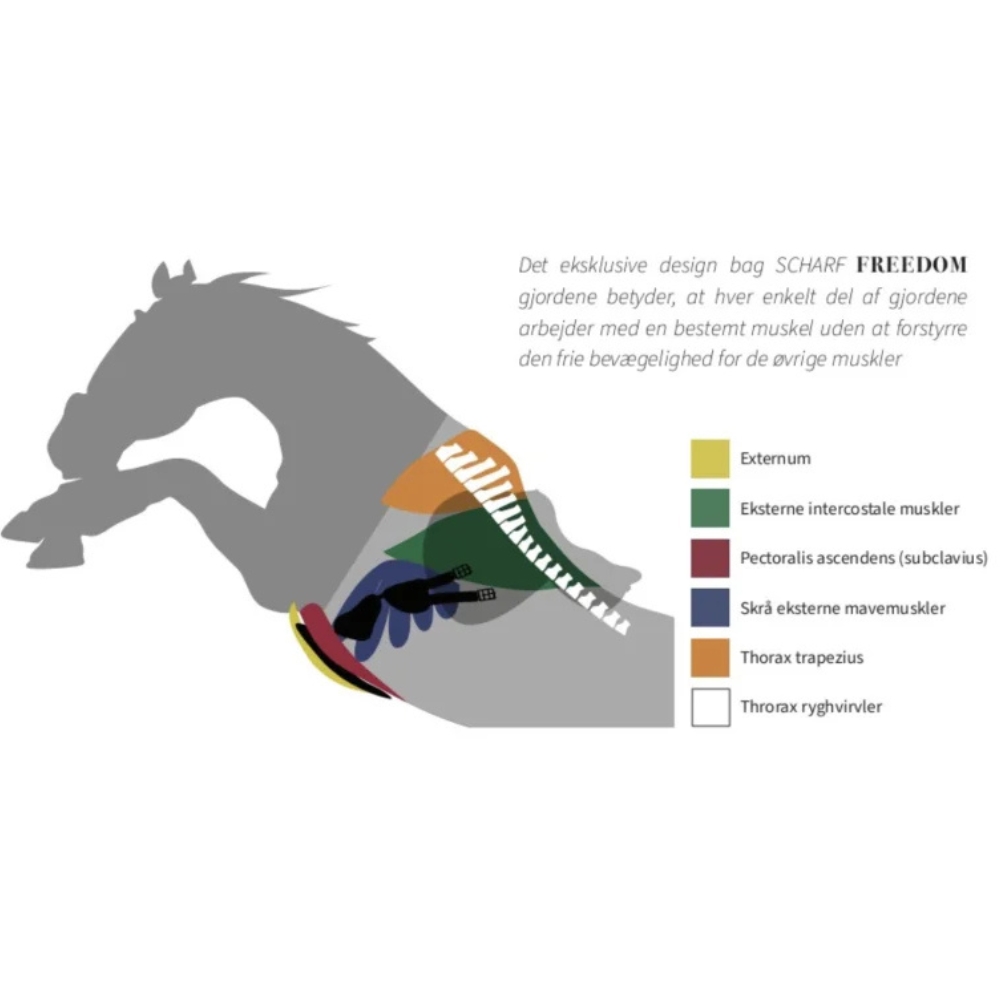 Fantastyczny popręg skokowy od Scharf, który zapewnia maksymalną swobodę i komfort koniowi podczas jazdy. Scharf Freedom Springgjord został opracowany z myślą o anatomii konia i jest zaprojektowany tak, aby każda część popręgu współpracowała z określonymi grupami mięśniowymi klatki piersiowej konia. Pomaga to koniowi funkcjonować optymalnie i daje wyraźne poczucie swobody ruchu.