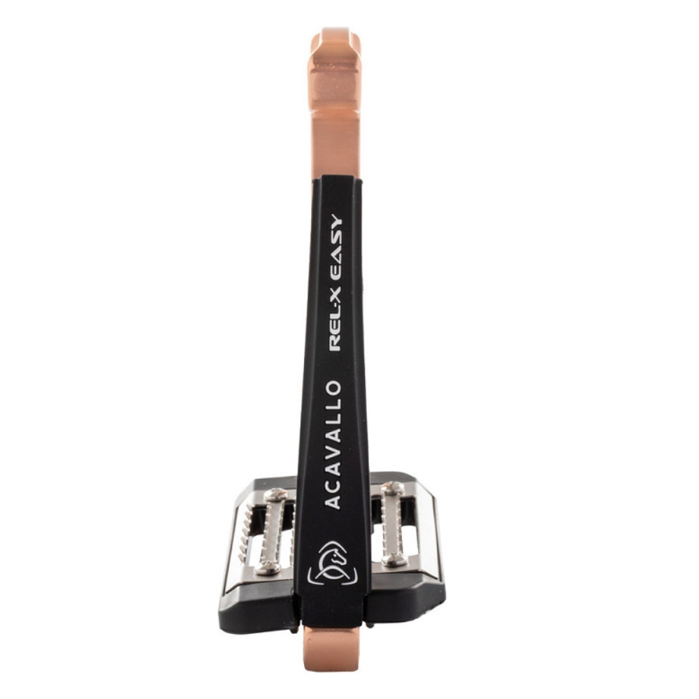 Strzemiona Acavallo REL-X Easy zostały zaprojektowane tak, aby zapewnić jeźdźcowi maksymalną stabilność, komfort i bezpieczeństwo. Łączą wytrzymały, zaawansowany technologicznie metal z elastycznym silikonowym ramieniem po zewnętrznej stronie, które zwiększa bezpieczeństwo podczas jazdy. Odczepiane silikonowe ramię może poruszać się we wszystkich kierunkach i pomaga szybko uwolnić stopę w razie upadku.